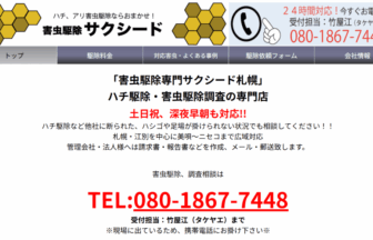 こちらのページでは全国選りすぐりの害虫・害獣駆除業者の中から、『北海道の優良業者』をご案内しています。北海道で害虫・害獣駆除でお悩みの方は、ぜひこちらの業者をご検討ください。