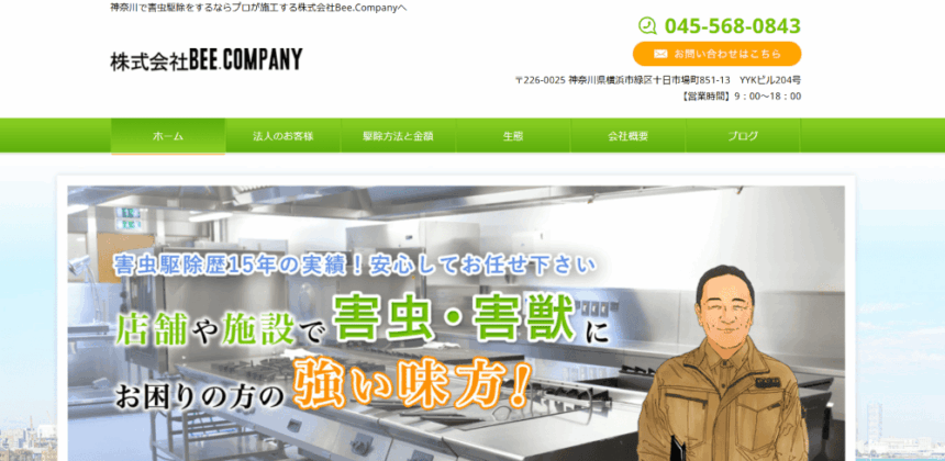 神奈川県横浜市緑区に拠点を構える「株式会社Bee.Company」は、ネズミやゴキブリ、コバエ、ダニなどの害虫・害獣対策を専門に行っている駆除業者です。創業から15年にわたり、神奈川県内はもちろん、東京・千葉・埼玉エリアまで幅広く対応しており、飲食店や宿泊施設、高齢者施設など多種多様な現場で豊富な施工実績を築いてきました。地元に根ざした迅速かつ丁寧な対応をモットーに、初めての方にも安心してご利用いただける体制を整えています。発生後の駆除はもちろん、再発を防ぐ予防対策にも力を入れており、害虫や害獣の問題を総合的にサポートいたします。
