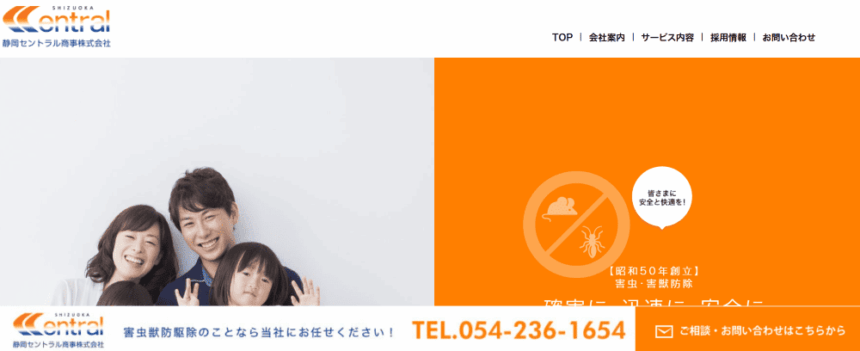 静岡セントラル商事株式会社は、静岡県を拠点に害虫・害獣の防除・駆除を行う専門会社です。ISOやHACCPに対応した施工体制を整え、現場ごとの環境や条件に応じた最適な対策をご提案しています。調査から施工まで、すべてをお客様の立場で考え、柔軟でスピーディーな対応を心がけています。明るく前向きな姿勢で、お客様の安心と満足を最優先に、日々業務に取り組んでいます。