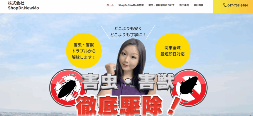 駆除業者では珍しく、女性スタッフが複数名在籍しておりますので、男性のお客様はもちろん、女性の一人暮らしの方でも安心してご依頼いただいております。