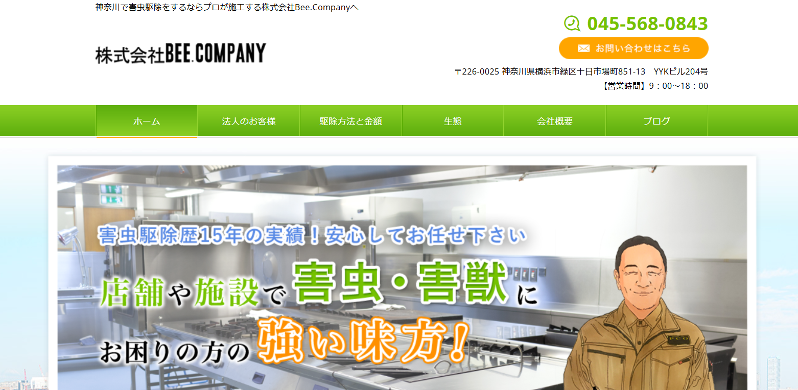 所在地 東京都大田区中馬込1-19-13 電話番号 03-6362-2957 業務内容 ハチ/ネズミ/コウモリ/ハクビシン/イタチ/アライグマ/鳥/ゴキブリ/毛虫/ムカデ 代表氏名 橘薫 -