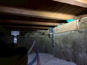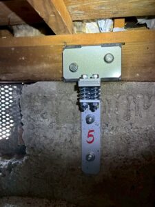 エポキシ樹脂による補修が難しいものは、新しく土台を差し込んで、写真のグレートホルダーという耐震金具を取り付けて対応しました。