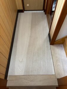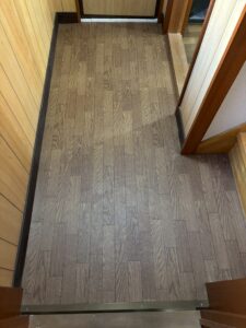 その上にクッションフロアをひいて、この場所の施工は完了です。
