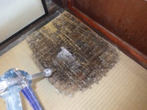 今回のご住宅は空き家だったこともあり、ご依頼主様は畳の交換まではいいとのことだったので、薬剤注入と散布による防蟻処理のみ行いました。