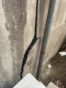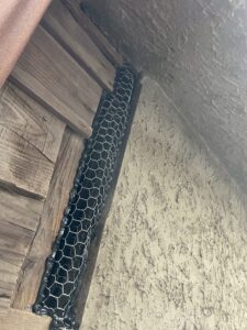 点検により、害獣が侵入した形跡が見られたので、外壁の隙間を全て金網で防ぎました。