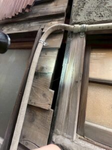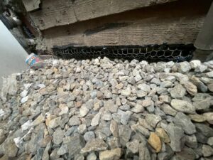 点検により、害獣が侵入した形跡が見られたので、外壁の隙間を全て金網で防ぎました。