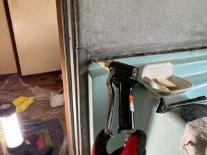 床下のない構造だったため、柱、壁内、梁、2階のオーナー様の部屋を重点的に、薬剤注入を行いました。